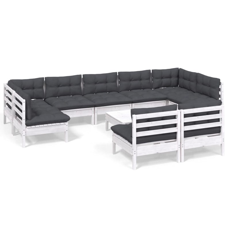 Maison exclusive - salon de jardin 10 pcs avec coussins blanc bois de pin massif