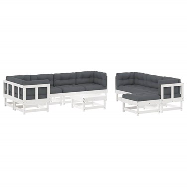 Maison exclusive - salon de jardin 10 pcs avec coussins blanc bois massif
