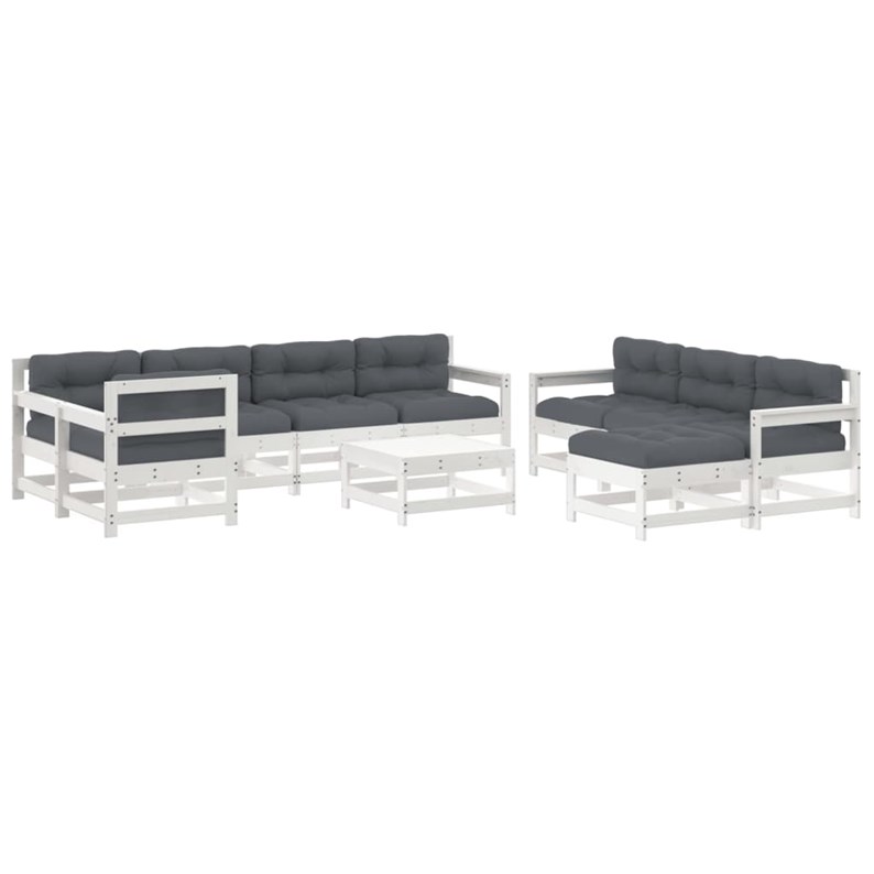 Maison exclusive - salon de jardin 10 pcs avec coussins blanc bois massif