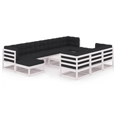 Maison exclusive - salon de jardin 11 pcs avec coussins blanc bois de pin massif