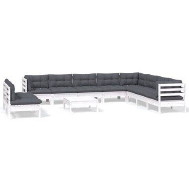 Maison exclusive - salon de jardin 11 pcs avec coussins blanc bois de pin solide