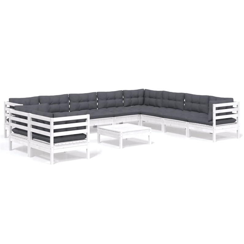 Maison exclusive - salon de jardin 11 pcs avec coussins blanc bois de pin solide