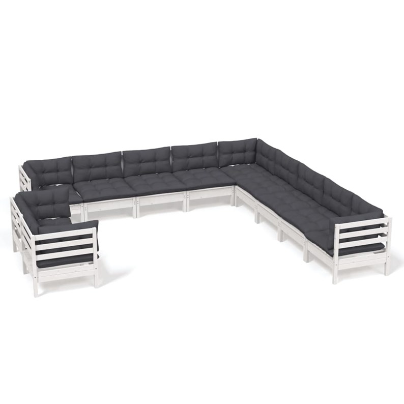 Maison exclusive - salon de jardin 11 pcs avec coussins blanc bois de pin solide