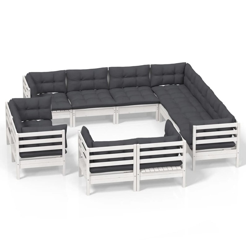 Maison exclusive - salon de jardin 11 pcs avec coussins blanc bois de pin solide