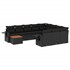 Cet ensemble de canapés de jardin est le complément parfait de votre arrière-cour, terrasse ou patio, offrant un espace confortable et accueillant pour discuter avec la famille et les amis ou simplement se détendre et profiter de l'extérieur. Matériau durable : la résine tressée, également connue sous le nom de poly rotin, est un matériau synthétique solide et nécessitant peu d'entretien qui ressemble au rotin naturel. Il est léger, facile à nettoyer et couramment utilisé pour les meubles d'extérieur en raison de sa durabilité et de ses propriétés de résistance aux intempéries.Fonction de rangement avec sac résistant à l'eau : chaque siège de jardin dispose d'un espace de rangement sous l'assise, complété par un sac résistant à l'eau pour ranger les coussins, les jouets et d'autres objets. Les sacs intérieurs sont dotés d'un couvercle et peuvent être solidement fixés aux sièges à l'aide de bandes auto-agrippantes pour plus de stabilité.Dessus stable et facile à nettoyer : cette table de jardin a un dessus en bois d'acacia robuste, durable et facile à nettoyer avec un chiffon humide.Table d'appoint pratique : ce mobilier d'extérieur comprend des tables d'appoint pliables avec un ressort à gaz sur les accoudoirs, offrant des endroits pratiques pour garder vos essentiels à portée de main.Conception modulaire : cet ensemble de meubles d'extérieur a une conception modulaire, ce qui le rend complètement flexible et facile à déplacer, afin que vous puissiez créer un agencement de meubles d'extérieur personnalisé. Bon à savoir :Pour que vos meubles d'extérieur restent beaux, nous vous recommandons de les protéger avec une housse imperméable.