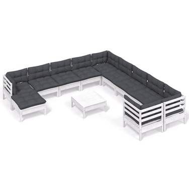 Maison exclusive - salon de jardin 12 pcs avec coussins blanc bois de pin