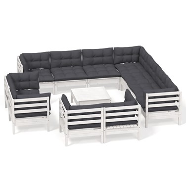 Maison exclusive - salon de jardin 12 pcs avec coussins blanc bois de pin solide