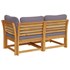 Cet ensemble de salon de jardin en bois avec coussins a un design élégant et constitue un excellent choix pour vous détendre et profiter du jardin ou du patio. Bois d'acacia massif : le bois d'acacia massif est un matériau naturel magnifique. Le bois d'acacia un bois dur tropical, qui est dense, robuste et durable.Expérience d'assise confortable : le dossier et les coussins rembourrés rendent l’ensemble de canapé de jardin plus confortable pour s'asseoir.Conception à lattes : la conception à lattes de l’ensemble de meubles en bois empêche efficacement l'eau de s'accumuler, ce qui garantit que l'assise reste sèche et exempte de tout risque de pourriture.Conception modulaire : cet ensemble de meubles d’extérieur présente une conception modulaire, ce qui le rend complètement flexible et facile à déplacer pour s'adapter à n'importe quel environnement. Vous pouvez le combiner avec d'autres segments modulaires disponibles dans le menu déroulant pour créer vos propres configurations d'ensemble de salon de jardin personnelles ! Bon à savoir :Pour que vos meubles d'extérieur restent beaux, nous vous recommandons de les protéger avec une housse imperméable.
