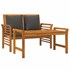 Détendez-vous et profitez de vos loisirs sur cet ensemble de meubles de jardin très tendance ! Il est conçu pour répondre à une variété de vos besoins. Bois massif de qualité supérieure : l'ensemble de salon est fabriqué en bois d'acacia. Le bois d'acacia massif est un beau matériau naturel. Le bois d'acacia est un bois dur tropical, dense, robuste et durable.Dessus de table robuste : grâce au dessus de table en bois massif avec un design à lattes, la table basse vous offre de l'espace pour mettre vos collations, corbeilles de fruits, objets décoratifs et autres objets essentiels.Design confortable : le dossier et les accoudoirs légèrement incurvés ajoutent un confort d'assise supplémentaire au banc.Coussin et oreillers confortables : le coussin et les oreillers bien rembourrés et amovibles offrent un confort optimal pendant votre temps d'assise en plein air. Remarque :Afin de prolonger la durée de vie de votre mobilier d'extérieur, nous vous recommandons de le protéger avec une housse imperméable.