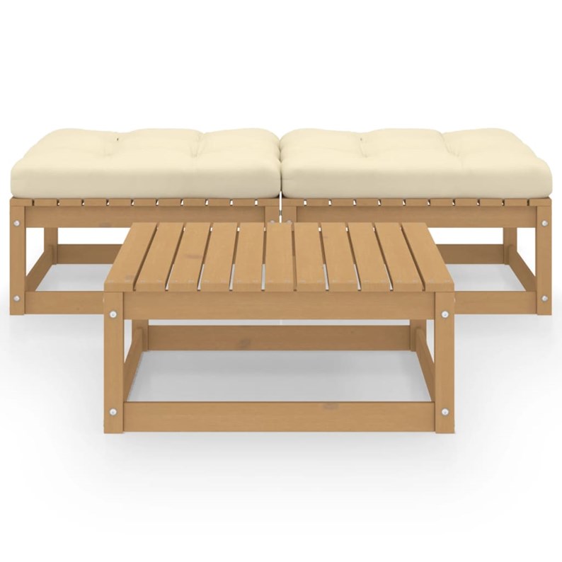 Ce salon de jardin est un excellent choix pour vous détendre et profiter du beau temps, faire une sieste ou discuter avec votre famille ou vos amis. L’ensemble de salon de jardin est fabriqué en bois de pin massif, ce qui le rend robuste et stable. Les coussins ajoutent un confort supplémentaire. Vous pouvez le combiner avec d’autres segments modulaires pour créer vos propres configurations de salon de jardin ! De plus, les deux repose-pieds peuvent être combinés et utilisés comme un banc. Remarque : afin de prolonger la durée de vie des meubles d'extérieur, nous vous recommandons de les protéger avec une housse imperméable.