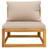 Ce salon de jardin en bois avec coussins sera un choix parfait pour l'heure du café ou pour vous prélasser. Bois d'acacia massif : cet ensemble de meubles de jardin est en bois d'acacia massif. Le bois d'acacia solide est un beau matériau naturel. Le bois d'acacia est un bois dur tropical, qui est dense, robuste et durable.Table de loisirs idéale : la table basse incluse vous permet de garder à portée de main vos collations, boissons ou magazines, etc.Expérience d'assise confortable : le dossier ajoute un confort d'assise supplémentaire au canapé. De plus, les coussins bien rembourrés offrent du confort pendant votre temps d'assise.Design modulaire : le canapé de jardin est flexible et facile à déplacer, vous pouvez donc le combiner avec d'autres segments modulaires de la boutique en ligne pour créer vos propres configurations de salon de jardin ! Bon à savoir :Pour faciliter au maximum le montage, chaque produit est livré avec des instructions.Remarque :Pour que vos meubles d'extérieur restent beaux, nous vous recommandons de les protéger avec une housse imperméable.