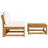 Cet ensemble de salon de jardin en bois avec coussins a un design élégant et constitue un excellent choix pour vous détendre et profiter du jardin ou du patio. Bois d'acacia massif : le bois d'acacia massif est un matériau naturel magnifique. Le bois d'acacia un bois dur tropical, qui est dense, robuste et durable.Expérience d'assise confortable : le dossier et les coussins rembourrés rendent l’ensemble de canapé de jardin plus confortable pour s'asseoir.Conception à lattes : la conception à lattes de l’ensemble de meubles en bois empêche efficacement l'eau de s'accumuler, ce qui garantit que l'assise reste sèche et exempte de tout risque de pourriture.Conception modulaire : cet ensemble de meubles d’extérieur présente une conception modulaire, ce qui le rend complètement flexible et facile à déplacer pour s'adapter à n'importe quel environnement. Vous pouvez le combiner avec d'autres segments modulaires disponibles dans le menu déroulant pour créer vos propres configurations d'ensemble de salon de jardin personnelles ! Bon à savoir :Pour que vos meubles d'extérieur restent beaux, nous vous recommandons de les protéger avec une housse imperméable.
