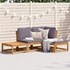 Cet ensemble de salon de jardin en bois avec coussins a un design élégant et constitue un excellent choix pour vous détendre et profiter du jardin ou du patio. Bois d'acacia massif : le bois d'acacia massif est un matériau naturel magnifique. Le bois d'acacia un bois dur tropical, qui est dense, robuste et durable.Expérience d'assise confortable : le dossier et les coussins rembourrés rendent l’ensemble de canapé de jardin plus confortable pour s'asseoir.Conception à lattes : la conception à lattes de l’ensemble de meubles en bois empêche efficacement l'eau de s'accumuler, ce qui garantit que l'assise reste sèche et exempte de tout risque de pourriture.Conception modulaire : cet ensemble de meubles d'extérieur a une conception modulaire, ce qui le rend complètement flexible et facile à déplacer, afin que vous puissiez créer un agencement de meubles d'extérieur personnalisé. Bon à savoir :Pour que vos meubles d'extérieur restent beaux, nous vous recommandons de les protéger avec une housse imperméable.