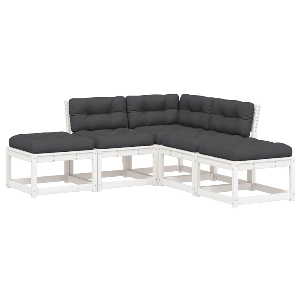 Maison exclusive - salon de jardin 5 pcs avec coussins blanc bois massif de pin