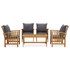 L'ensemble de salon de jardin en bois ajoute un look vintage et est spécialement conçu pour votre jardin, patio ou autre espace de vie extérieur ! L’ensemble de meubles d’extérieur est construit en bois d'acacia massif avec une finition à l’huile, ce qui le rend stable et durable. Les coussins épais d'assise et de dossier rendent l'ensemble doux pour vous y asseoir. Grâce au dessus de table en bois massif au design à lattes, la table basse vous offre de l’espace pour mettre vos collations, paniers de fruits, objets décoratifs, ainsi que d’autres essentiels. Le dossier légèrement incurvé et les accoudoirs ajoutent au confort d'assise de la chaise. Remarque importante : les couleurs et les grains varient d'une pièce à l'autre, rendant chaque pièce unique. La livraison est aléatoire, ce qui garantit l'exclusivité et l'individualité de votre produit.