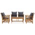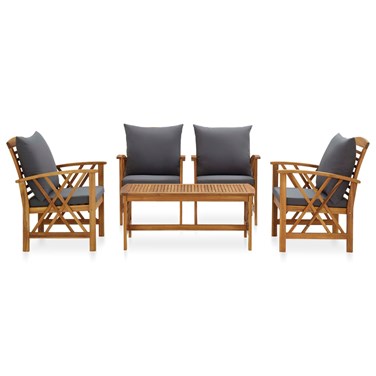 L'ensemble de salon de jardin en bois ajoute un look vintage et est spécialement conçu pour votre jardin, patio ou autre espace de vie extérieur ! L’ensemble de meubles d’extérieur est construit en bois d'acacia massif avec une finition à l’huile, ce qui le rend stable et durable. Les coussins épais d'assise et de dossier rendent l'ensemble doux pour vous y asseoir. Grâce au dessus de table en bois massif au design à lattes, la table basse vous offre de l’espace pour mettre vos collations, paniers de fruits, objets décoratifs, ainsi que d’autres essentiels. Le dossier légèrement incurvé et les accoudoirs ajoutent au confort d'assise de la chaise. Remarque importante : les couleurs et les grains varient d'une pièce à l'autre, rendant chaque pièce unique. La livraison est aléatoire, ce qui garantit l'exclusivité et l'individualité de votre produit.