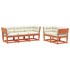 Cet ensemble de canapés de jardin est le complément parfait de votre arrière-cour, terrasse ou patio, offrant un espace confortable et accueillant pour discuter avec la famille et les amis ou simplement se détendre et profiter de l'extérieur. Bois de pin massif : le bois de pin massif est un matériau naturel magnifique. Le bois de pin a un grain droit et les nœuds donnent au matériau son aspect caractéristique et rustique.Expérience d'assise confortable : ce mobilier d'extérieur, doté de dossiers et de coussin épais rembourré, offre une expérience d'assise confortable.Conception à lattes : la conception à lattes du canapé d'extérieur empêche efficacement l'eau de s'accumuler, ce qui garantit que l'assise reste sèche et exempte de tout risque de pourriture.Conception modulaire : cet ensemble de meubles d'extérieur a une conception modulaire, ce qui le rend complètement flexible et facile à déplacer, afin que vous puissiez créer un agencement de meubles d'extérieur personnalisé. Bon à savoir :Pour que vos meubles d'extérieur restent beaux, nous vous recommandons de les protéger avec une housse imperméable.
