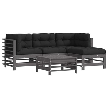 Maison exclusive - salon de jardin 5 pcs avec coussins gris bois massif
