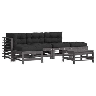 Maison exclusive - salon de jardin 6 pcs avec coussins gris bois massif