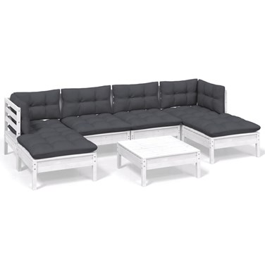Maison exclusive - salon de jardin 7 pcs avec coussins blanc bois de pin