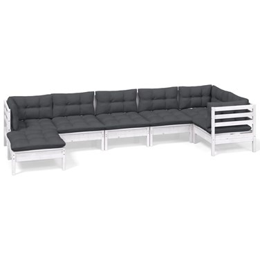 Maison exclusive - salon de jardin 7 pcs avec coussins blanc bois de pin massif