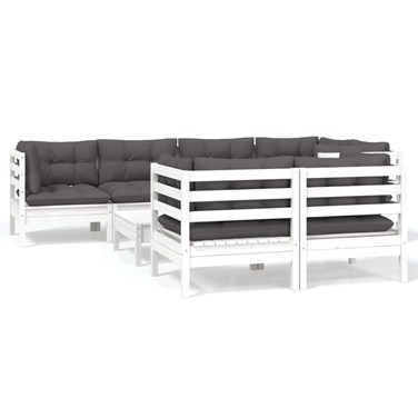 Maison exclusive - salon de jardin 8 pcs avec coussins blanc bois de pin massif