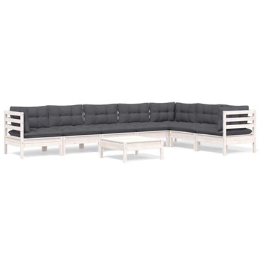 Maison exclusive - salon de jardin 8 pcs avec coussins blanc bois de pin massif