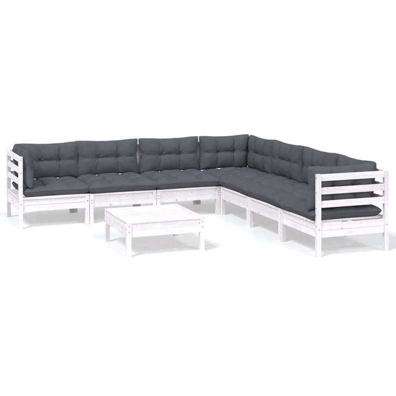 Maison exclusive - salon de jardin 8 pcs avec coussins blanc bois de pin massif