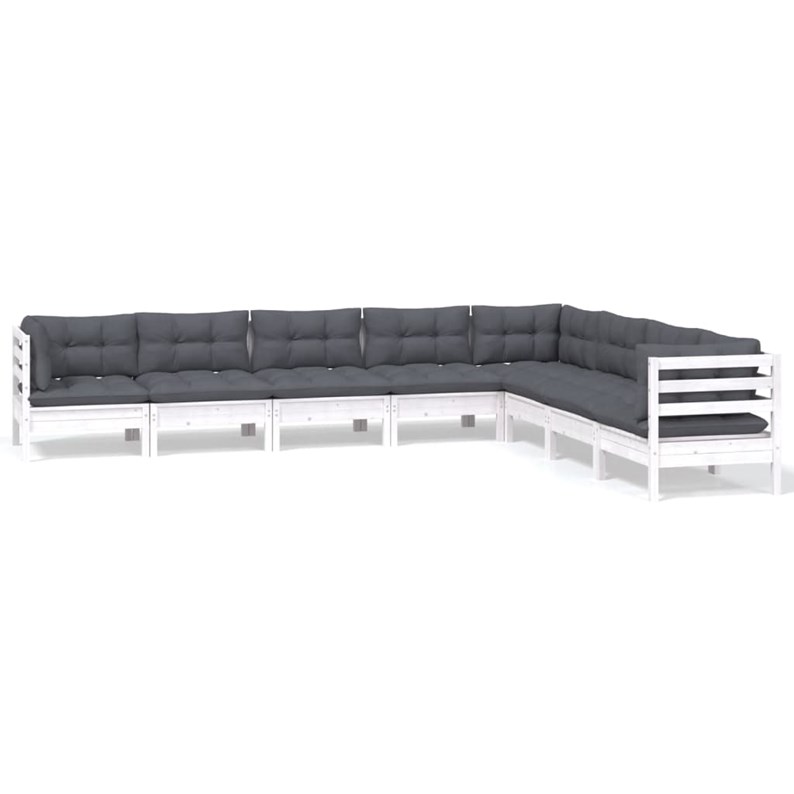 Maison exclusive - salon de jardin 8 pcs avec coussins blanc bois de pin massif