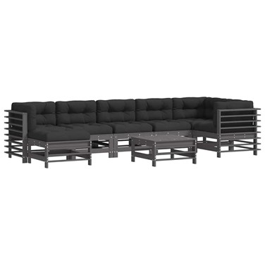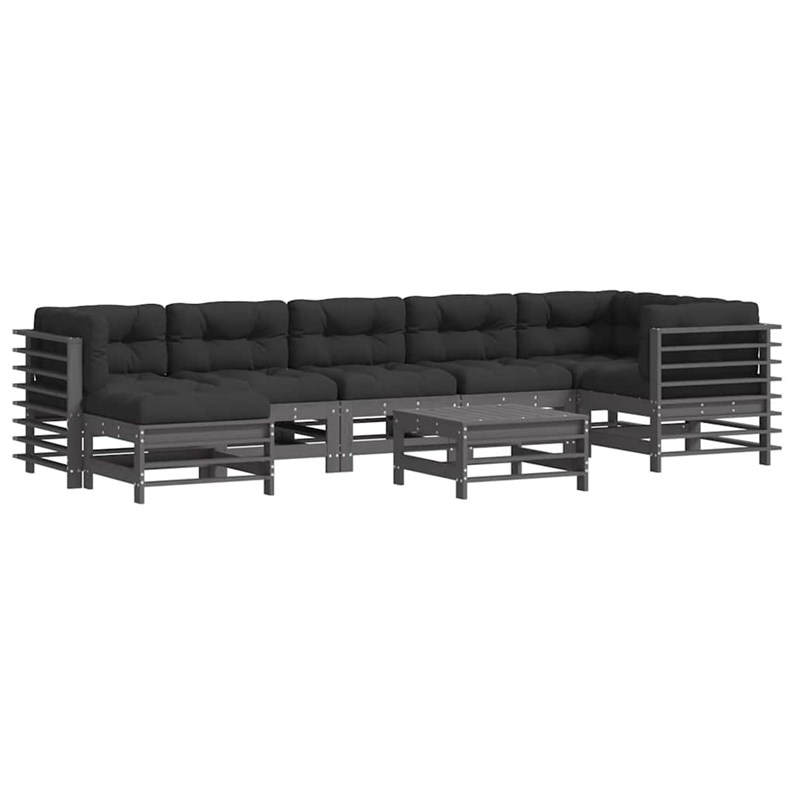 Maison exclusive - salon de jardin 8 pcs avec coussins gris bois massif