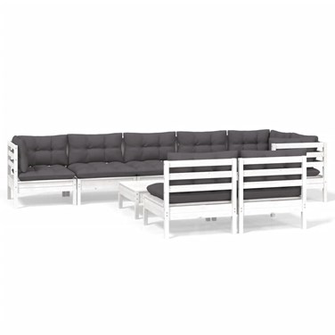 Maison exclusive - salon de jardin 9 pcs avec coussins blanc bois de pin massif