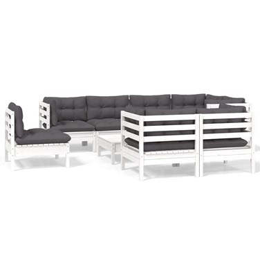 Maison exclusive - salon de jardin 9 pcs avec coussins blanc bois de pin massif