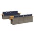 Cet ensemble de canapés de jardin est le complément parfait de votre arrière-cour, terrasse ou patio, offrant un espace confortable et accueillant pour discuter avec la famille et les amis ou simplement se détendre et profiter de l'extérieur. Matériau durable : la résine tressée, également connue sous le nom de poly rotin, est un matériau synthétique solide et nécessitant peu d'entretien qui ressemble au rotin naturel. Il est léger, facile à nettoyer et couramment utilisé pour les meubles d'extérieur en raison de sa durabilité et de ses propriétés de résistance aux intempéries.Dessus stable et facile à nettoyer : cette table de jardin a un dessus en bois d'acacia robuste, durable et facile à nettoyer avec un chiffon humide.Table d'appoint pratique : ce mobilier d'extérieur comprend une table d'appoint pliable avec un ressort à gaz sur les accoudoirs, offrant un endroit pratique pour garder vos essentiels à portée de main.Housse amovible et lavable : ces coussins de siège sont dotés de housses amovibles pour un lavage et un entretien faciles.Conception modulaire : cet ensemble de meubles d'extérieur a une conception modulaire, ce qui le rend complètement flexible et facile à déplacer, afin que vous puissiez créer un agencement de meubles d'extérieur personnalisé. Bon à savoir :Pour que vos meubles d'extérieur restent beaux, nous vous recommandons de les protéger avec une housse imperméable.