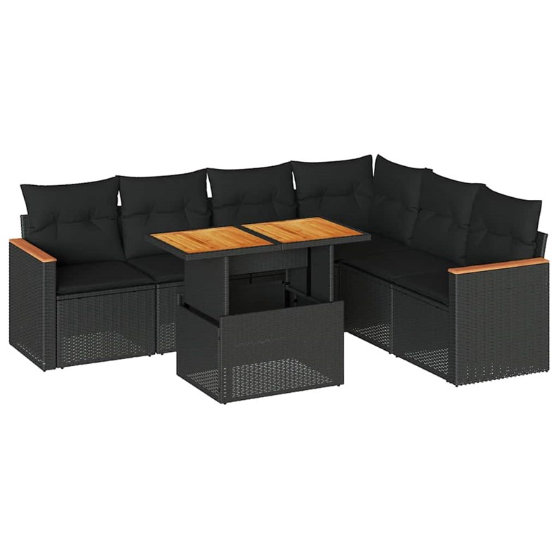 Maison exclusive - salon de jardin avec coussins 7 pcs noir résine tressée acaci