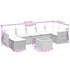 Cet ensemble de canapés de jardin est le complément parfait de votre arrière-cour, terrasse ou patio, offrant un espace confortable et accueillant pour discuter avec la famille et les amis ou simplement se détendre et profiter de l'extérieur. Matériau durable : la résine tressée, également connue sous le nom de poly rotin, est un matériau synthétique solide et nécessitant peu d'entretien qui ressemble au rotin naturel. Il est léger, facile à nettoyer et couramment utilisé pour les meubles d'extérieur en raison de sa durabilité et de ses propriétés de résistance aux intempéries.Dessus stable et facile à nettoyer : cette table de jardin a un dessus en bois d'acacia robuste, durable et facile à nettoyer avec un chiffon humide. Fonction de rangement avec sac résistant à l'eau : chaque siège de jardin dispose d'un espace de rangement sous l'assise, complété par un sac résistant à l'eau pour ranger les coussins, les jouets et d'autres objets. Les sacs intérieurs sont dotés d'un couvercle et peuvent être solidement fixés aux sièges à l'aide de bandes auto-agrippantes pour plus de stabilité.Expérience d'assise confortable : ce mobilier d'extérieur, doté de coussins épais, offre une expérience d'assise confortable.Conception modulaire : cet ensemble de meubles d'extérieur a une conception modulaire, ce qui le rend complètement flexible et facile à déplacer, afin que vous puissiez créer un agencement de meubles d'extérieur personnalisé. Bon à savoir :Pour que vos meubles d'extérieur restent beaux, nous vous recommandons de les protéger avec une housse imperméable.
