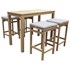 Accueillez jusqu'à 4 personnes sur votre terrasse pour partager un bon repas ou un moment de convivialité entre amis ou en famille. Ce mobilier d'extérieur se compose d'un mange debout et de 4 tabourets, dans un style contemporain. Chaque siège comporte un coussin d'assise moelleux pour pouvoir s'asseoir de manière plus confortable. Une fois que vous quittez la table, vous pouvez ranger les tabourets en dessous du mange debout pour garder une terrasse bien organisée. Cet ensemble a été confectionné en bois d'acacia, offrant durabilité, robustesse ainsi qu'une belle résistance aux intempéries. Vous pourrez ainsi garder ces meubles d'extérieur de nombreuses années sans qu'ils ne se dégradent.