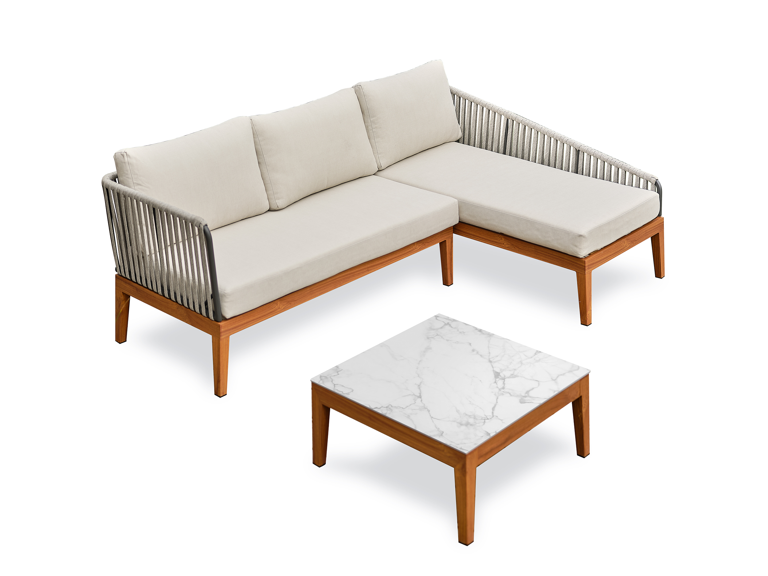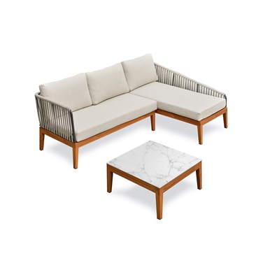 Salon bas de jardin alphi en aluminium - effet bois