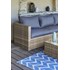 Salon de jardin BAVARO en résine tressée miel, composé de 2 méridiennes 2 places, un angle, une table. Coussins déhoussables en toile 100% polyester anthracite.