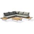 Salon de jardin LAVEZZI en aluminium avec plateau aluminium imitation bois composé de 2 méridiennes, d'un angle, d'une table basse, de 3 coussins d'assise et de 6 coussins de dossier.