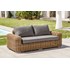 Salon de jardin BORABORA en résine tressée ronde, composé d'une table basse avec plateau verre empé, d'un canapé 3 places, d'un canapé 2 places et d'un fauteuil. Coussins déhoussables 250 g/m² garni polyester (20kg/m3) de 11 cm d'épaisseur.