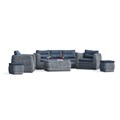 Salon de jardin BAHAMAS 7 places en aluminium résine tressée imitation feuille de bananier, 1 canapé 3 pl, 2 fauteuils, 1 table basse plateau verre, 2 poufs. Coussins déhoussables 100% polyester anthracite.