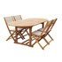 Ce salon de jardin 4/8 places deviendra la pièce phare de votre jardin ! En bois d’acacia massif et textilène, il apportera de la douceur et de l'élégance à votre jardin. Vendu avec 4 chaises, vous pouvez rajouter des chaises pour atteindre 8 personnes grâce à sa rallonge papillon. La table est prête à recevoir vos convives pour de belles soirées d'été. Touche tendance grâce à la couleur grise des dossiers et des assises de chaises. Disposant d'une rallonge papillon, la table est prête à recevoir vos convives. Caractéristiques : Matière : Acacia et textilène - Couleur : Naturel et gris Chaises : 50 x 58 x 90 cm - Table : L150/200 cm x H74 cm x l90 cm - Poids : 41 kg - Garantie : 5 ans - Particularité : Assise en textilène - Montage : Pieds de la table à monter. Les + : Rallonge papillon – Chaises pliantes – Bois d'acacia. Comporte 4 chaises, 1 table. Livraison : Au pas-de-porte ou au rez-de-chaussée, par un livreur du lundi au vendredi sur rendez-vous. Un sms vous sera envoyé pour choisir le jour de livraison, puis un second sms avant votre livraison pour vous indiquer un créneau horaire de 2h. Lors de la réception de votre commande, vous ne devez signer le bordereau de livraison qu’après avoir vérifié votre commande en présence du livreur.