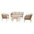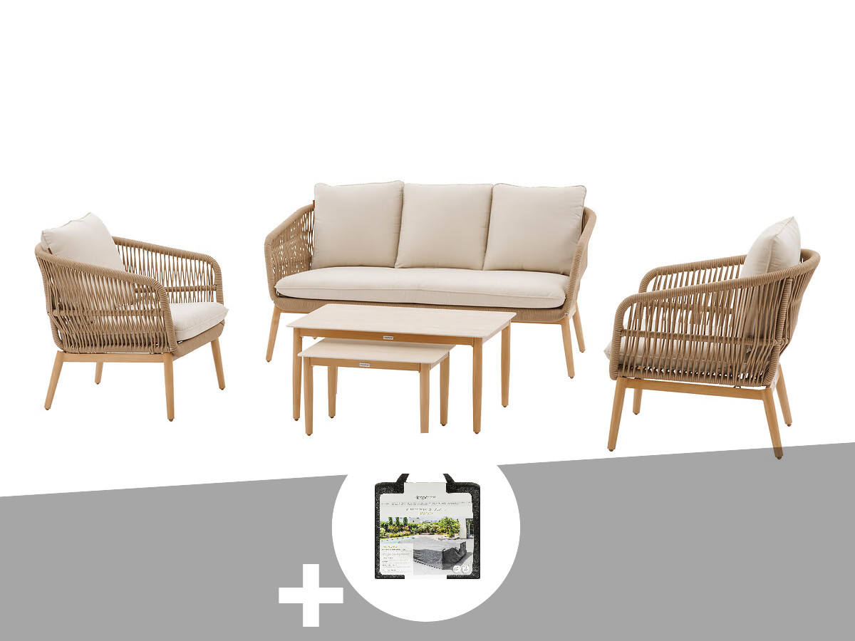 Le salon de jardin Orissa par Hespéride est une solution élégante et conviviale pour aménager un espace extérieur accueillant. Il comprend un canapé 3 places, deux fauteuils et deux tables basses gigognes, tous au design moderne avec un tressage effet bois brossé et des pieds évasés.