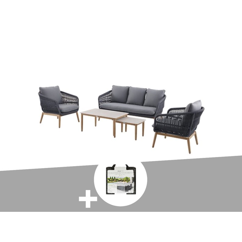 Salon de jardin alu effet bois brossé orissa gris + housse - 5 places - hespérid