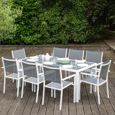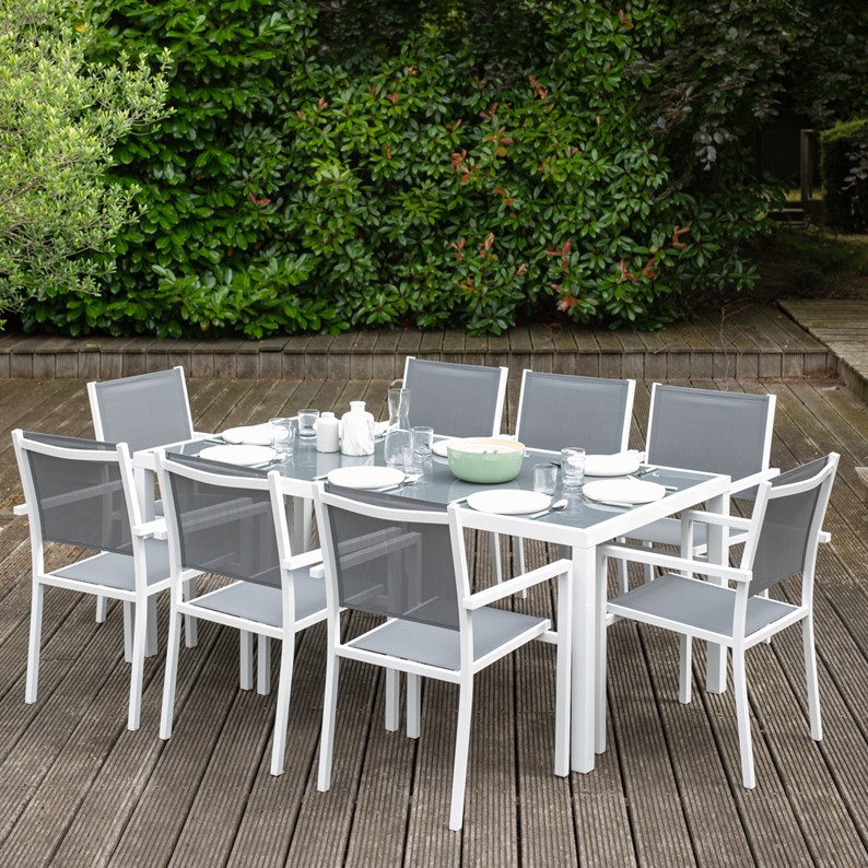 Salon de jardin bari en textilène gris 8 places - aluminium blanc