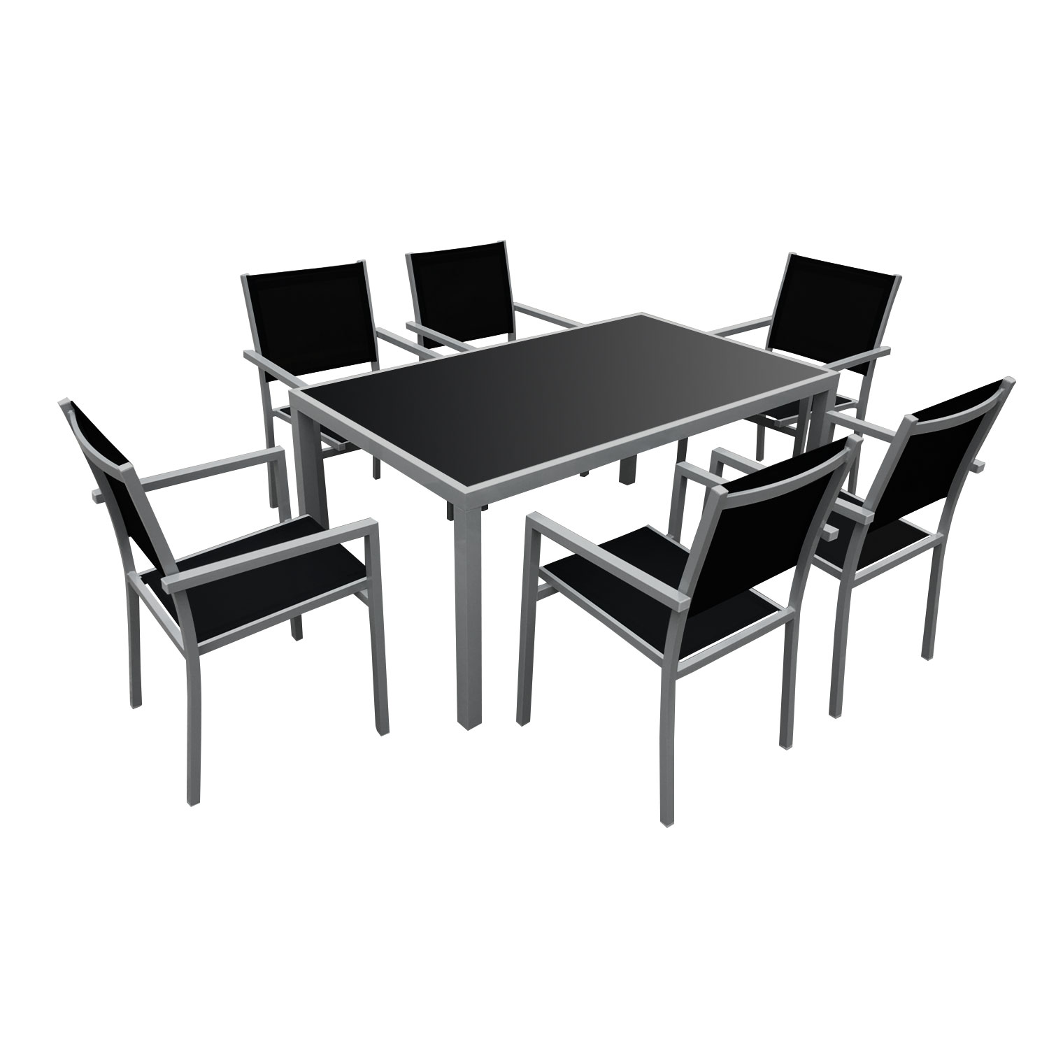 Salon de jardin bergamo en textilène noir 6 places - aluminium gris