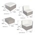 Le salon de jardin BONIFACIO contient : 2 fauteuils d'angle, 2 chauffeuses, 2 repose-pieds, 1 table basse