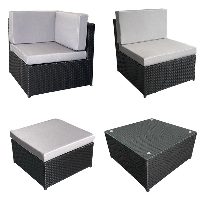 Salon de jardin bonifacio résine tressée noir 6 places coussin gris