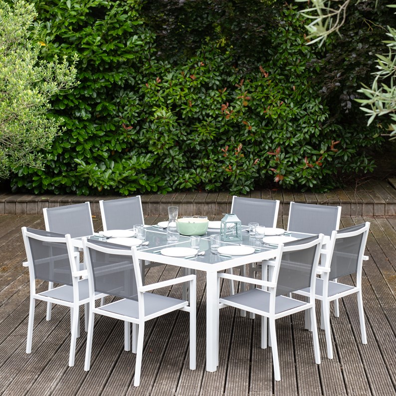 Salon de jardin cagliari en textilène gris 8 places - aluminium blanc