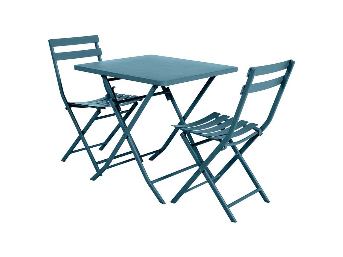 Salon de jardin carré en métal greensboro 70 x 70 cm bleu canard avec 2 chaises